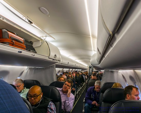 We were seated almost at the back of the plane, and I think I hit my head on each and every overhead bin and hit my hip on nearly every aisle seat! Once I found our seats, my wife had the (dis)pleasure of sharing her seat with my right arm…though she did get to sit at the window. I was relegated to trying to occupy as much of the aisle as I could reasonably get away with just to stretch out my left leg a bit without jabbing it into the back of the person in front of me.