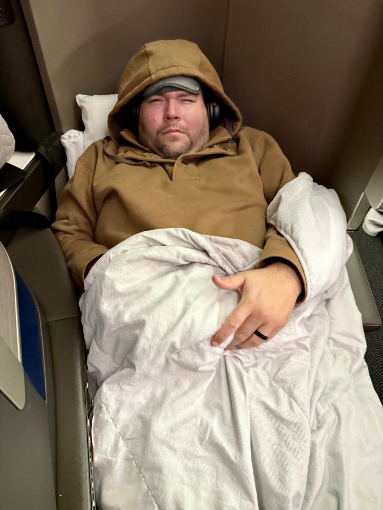 Other than the strange window alignments, the seats were nice. That said, they were tight for a big fellow like me, or at least the one I was in was. The width was snug but fine. The main issue I found was that the footwell at my seat appeared to be both narrower, shorter, and tapered faster than those in the surrounding seats that I saw. This presented a bit of an issue for me as it meant that I couldn’t quite lie flat since my size 15 EEEE feet couldn’t make full use of the footwell.