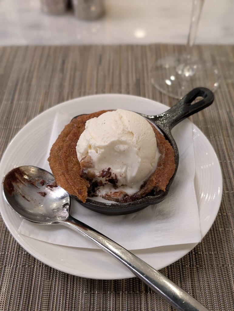 We decided to give the restaurant a go, despite a fairly long wait for a seat. It was decent, though not terribly memorable. I do remember feeling bad for for the staff though; there were just too many patrons and not enough staff to keep up. The one thing that the Polaris lounge did that was super memorable was its chocolate chip cookie brownie sundae skillet.